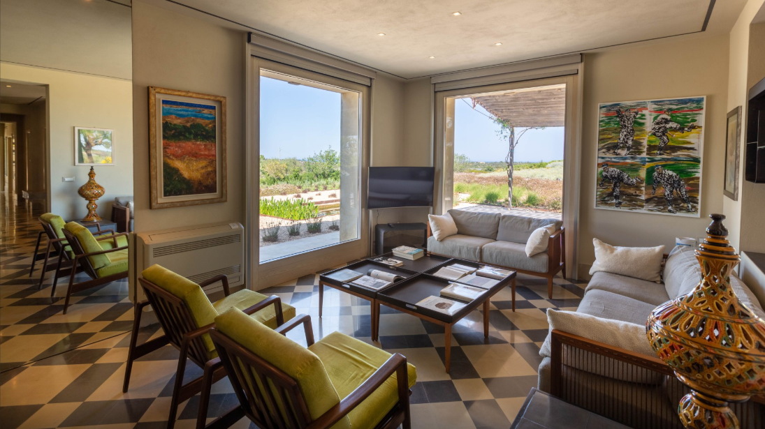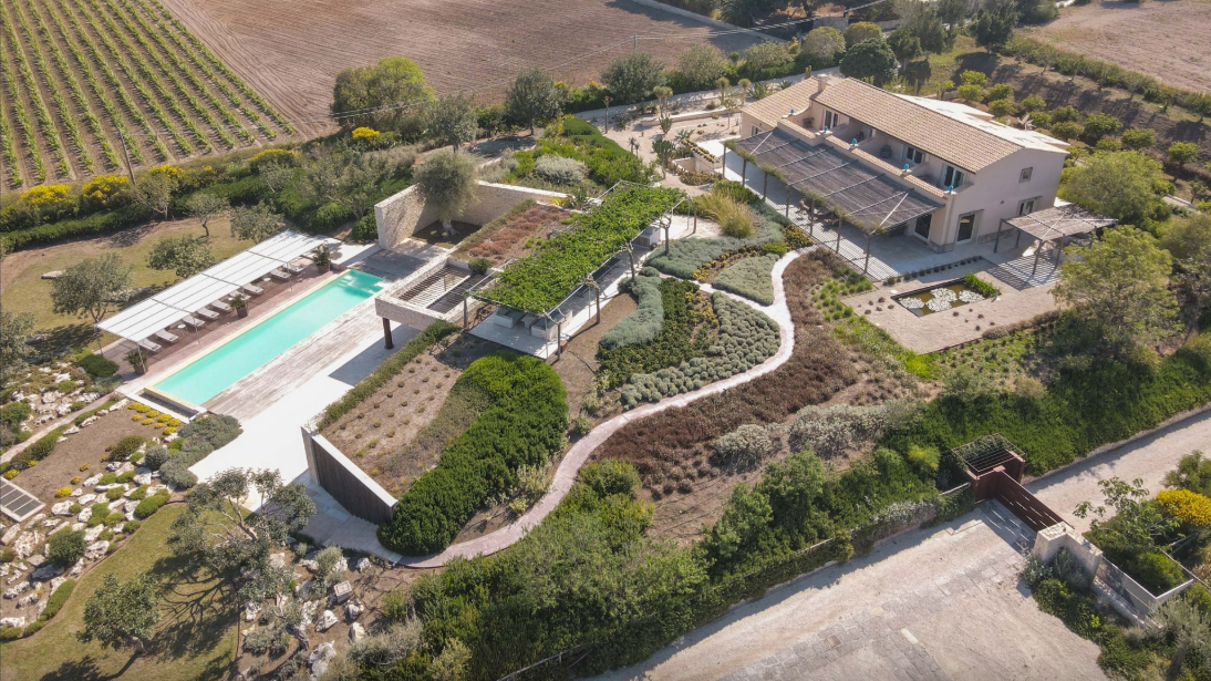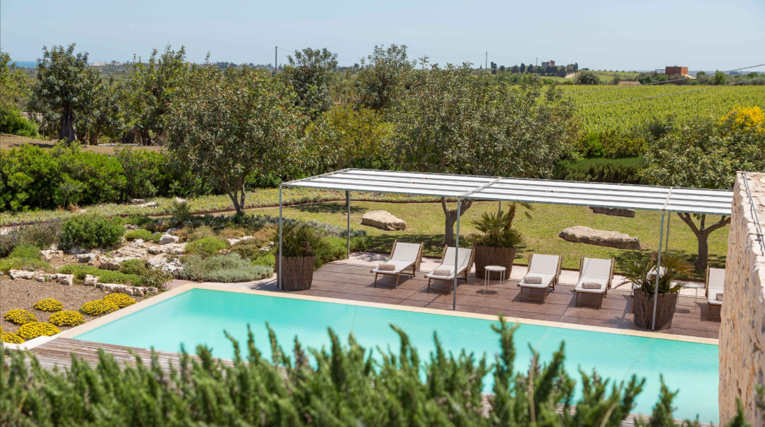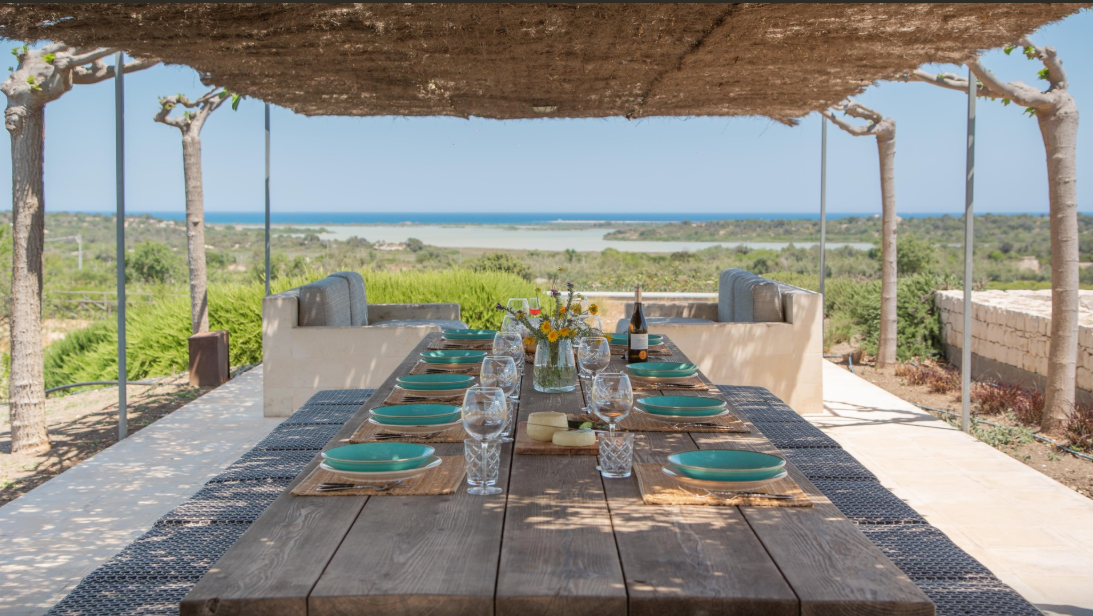 Just 10 minutes from Marzamemi and 20 minutes from the centre of Noto, the villa is ideally located as a base for exploring the area. From its elevated position you will be captivated by the panoramic views of the Vendicari Nature Reserve, just 5 km away, with its wonderful beaches and typical vegetation. In total harmony with its natural surroundings, the sinuous forms of the garden follow the natural undulation of the land around the villa in total osmosis with the views of the reserve. The Villa boasts an exquisitely designed outdoor area under the shade of a canopy with a dining area with barbecue inviting you to pleasant meals. The exterior blends in perfect harmony and fluidity with the interior. The owners have chosen to pay great attention to detail, using local artists and craftsmen.