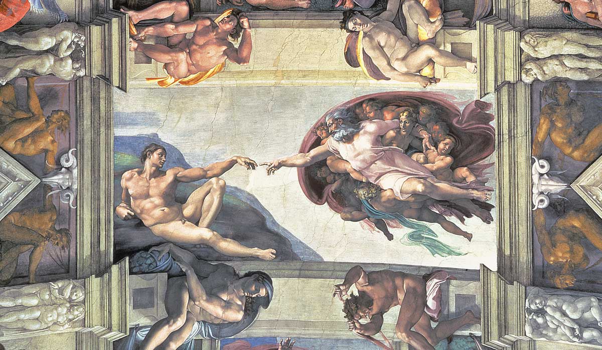 Julius II della Rovere (pontiff from 1503 to 1513), the nephew of Sixtus IV, decided to partly alter the decoration, entrusting the work in 1508 to Michelangelo Buonarroti, who painted the Ceiling and, on the upper part of the walls, the lunettes. The nine central panels show the Stories of Genesis, from the Creation to the Fall of Man, to the Flood, and the subsequent rebirth of humanity with the family of Noah. Again, towards the end of 1533, Clement VII de’ Medici (pontiff from 1523 to 1534) asked Michelangelo to paint the Last Judgement on the altar wall. How could he refuse? And, in fact, he did not, but painted his vision of the Judgement, with a powerful and furious Jesus Christ.