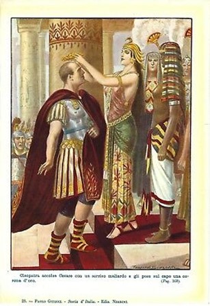 Now that he was there, before returning to Rome, Caesar wanted to fix things in that land, which had been going wrong for a long time. According to their father’s will, Ptolemy was to share the throne with his sister Cleopatra after marrying her; this was quite common in ancient Egypt, where pharaohs almost always married their sisters. But when Caesar arrived, Cleopatra was not there: Potinus had confined her and locked her up.
