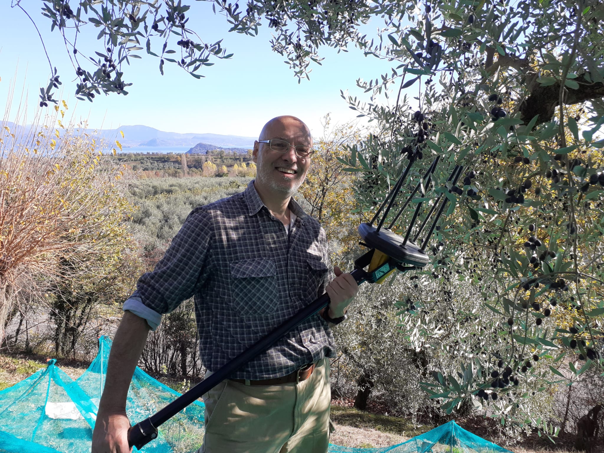 The main cultivar is the Casaliva, a native variety of Lake Garda. I have been following their ripening since May when you can see the flowers blooming. The season looked good this year, but olives are always at risk: a frost, or an assault of the so-called “olive mosquito”, can compromise the harvest. Last year, due to a late frost, we could not make any oil at all.