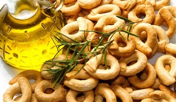 Across the region, your indispensable travel companion is Tarallo, a baked product with an unmistakable ring shape and crumbly, crisp texture. It is made with dough from flour, water, white wine and extra virgin olive oil. You can find them everywhere, sweet and savoury, flavoured with wild fennel glazed cocoa; there is something for everyone. Be careful: one pulls the other!