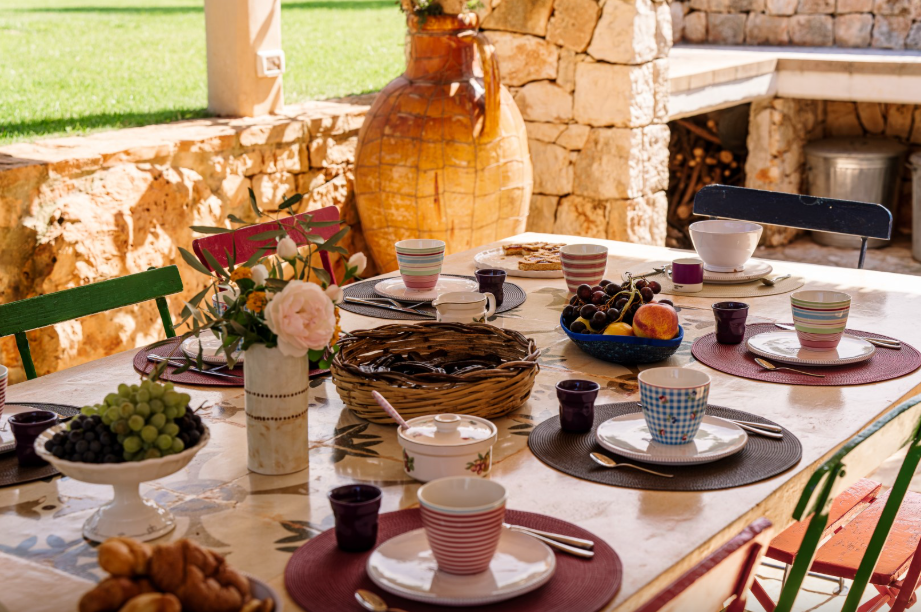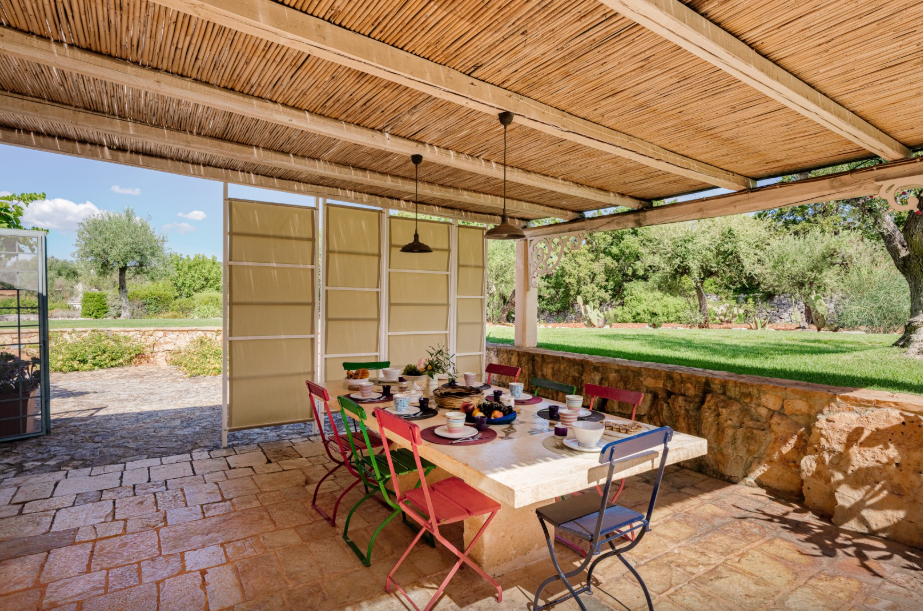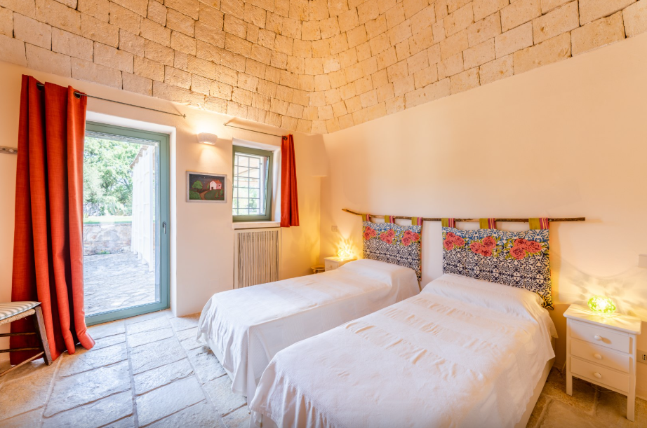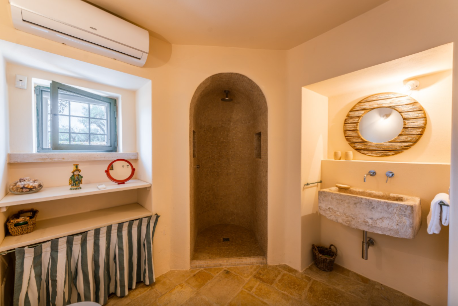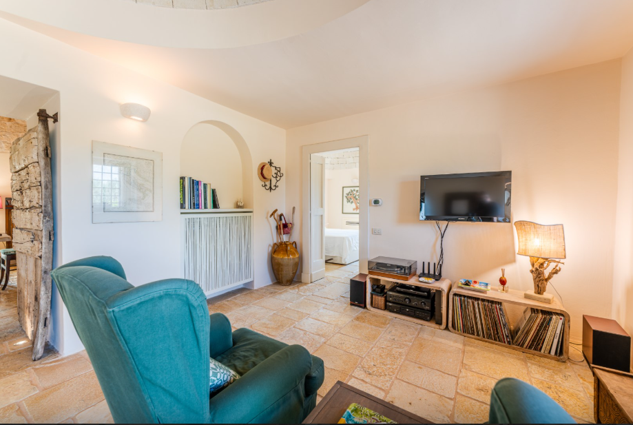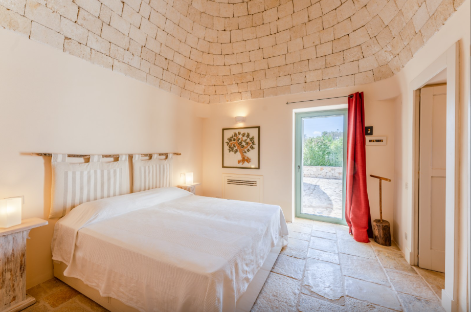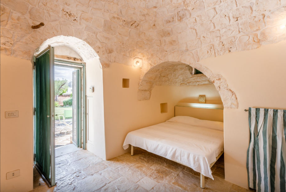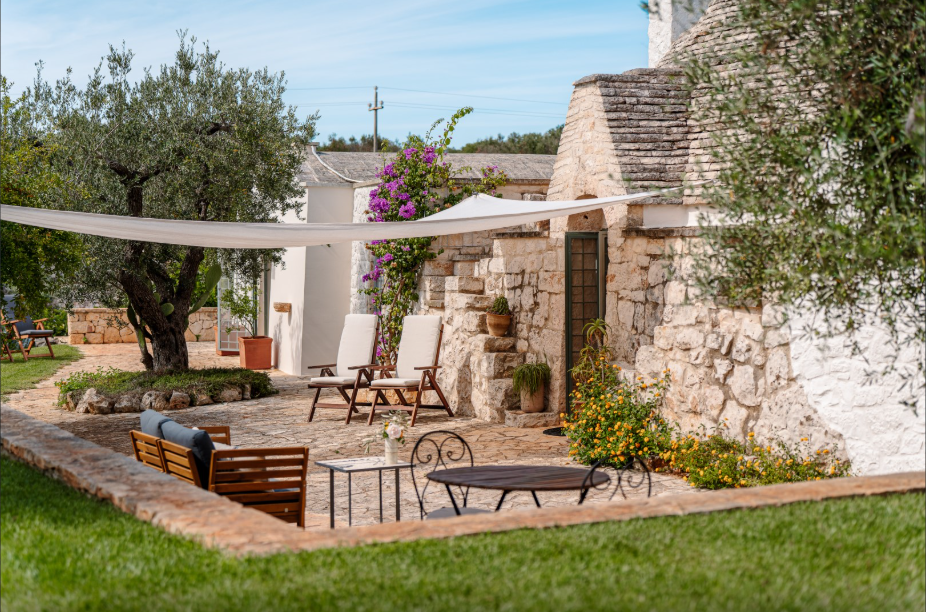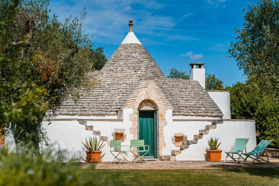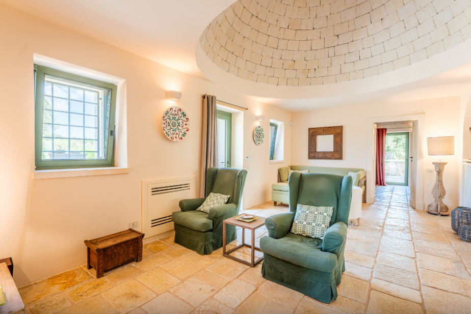 The park of approximately 34,000 sq m, includes a vast olive grove and typical species of Mediterranean shrub, including strawberry trees, rosemary, lavender, lantana, mastic, prickly pears, agaves and cacti. Adjacent to the pool is a vegetable garden offering fresh seasonal produce. A stone path connects the parking area to both the main trullo entrance, via a few steps, and the annex, surrounded by flowers and plants.
