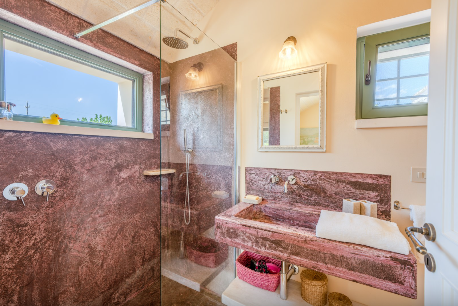 In the heart of the Itria Valley, among the dry stone walls and centuries-old olive groves of the Apulian countryside, this refined stone residence combines the authenticity of traditional architecture with contemporary comfort. The main residence features three double bedrooms, each with private bathroom, and a large open-plan area with central fireplace. A separate annex, created in a charming trullo, offers a romantic setting with an alcove bed, fireplace and private bathroom. Outside, furnished verandas, a Mediterranean garden and an elegant stone path lead to the panoramic infinity pool, surrounded by greenery and facing the plateau.