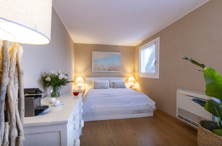The complex extends over a total area of approximately 200 sq m, with the main house and three annexes, arranged on one level and connected by internal garden paths. The main house, located closest to the sea, includes the common areas and features the living room with sofa and TV; one double bedroom with ensuite bathroom with shower, direct access to the outside and a private terrace with sea view; the kitchen and a dining room with a large window opening onto the terraces with pergola and sea view. Annex one has two mirror-image double bedrooms, each with independent entrance and an ensuite bathroom with shower partially integrated into the room and a private shaded terrace with sea view. Annexes 2 and 3 have each a double bedroom with ensuite bathroom with shower.