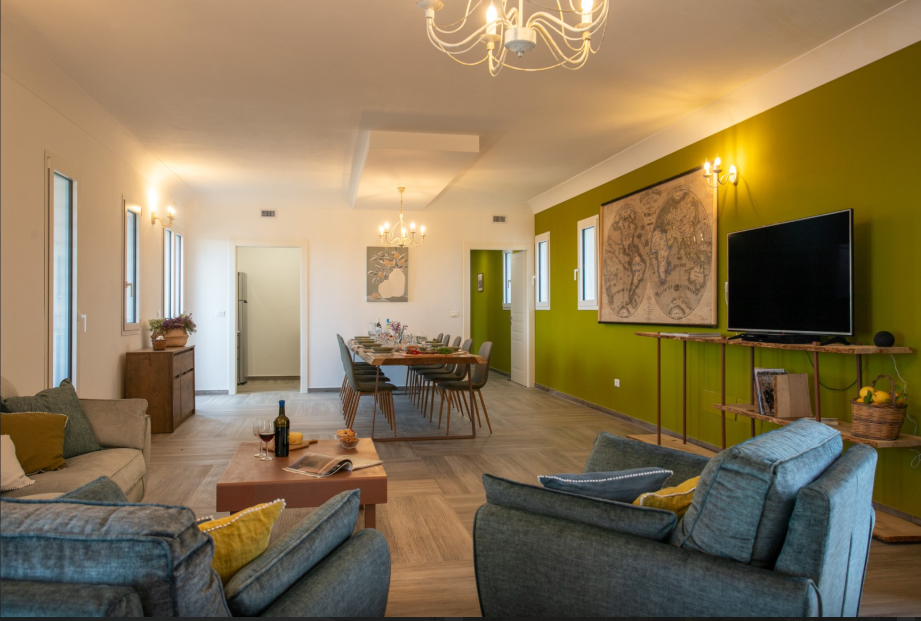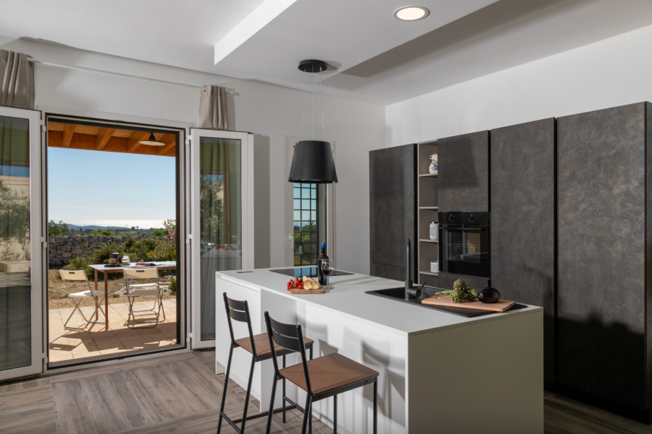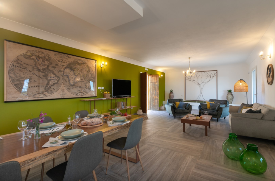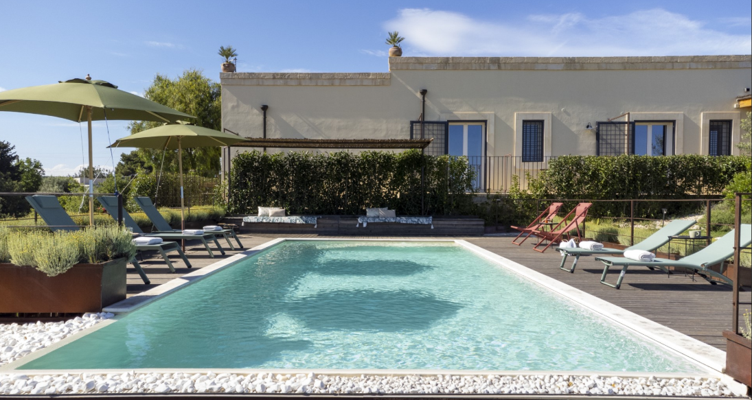 The Villa is situated in an elevated, rural position near Noto, overlooking the scenic Val di Noto and surrounding olive groves. Spanning two self-contained houses side by side, each one is furnished in a colourful, contemporary designer style. Well-equipped for modern comfort, the villa spans five bedrooms, spacious living areas, outdoor terraces, dining areas and a panoramic pool and wooden sun deck.