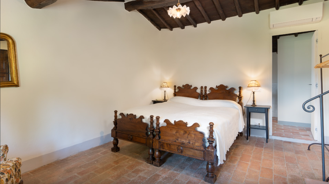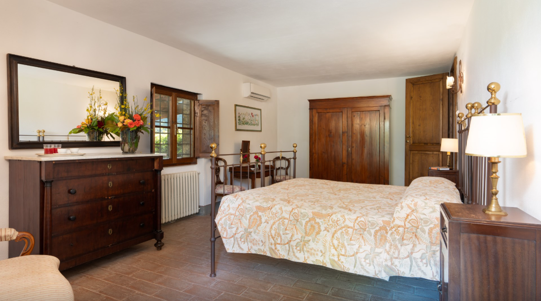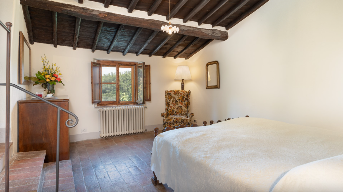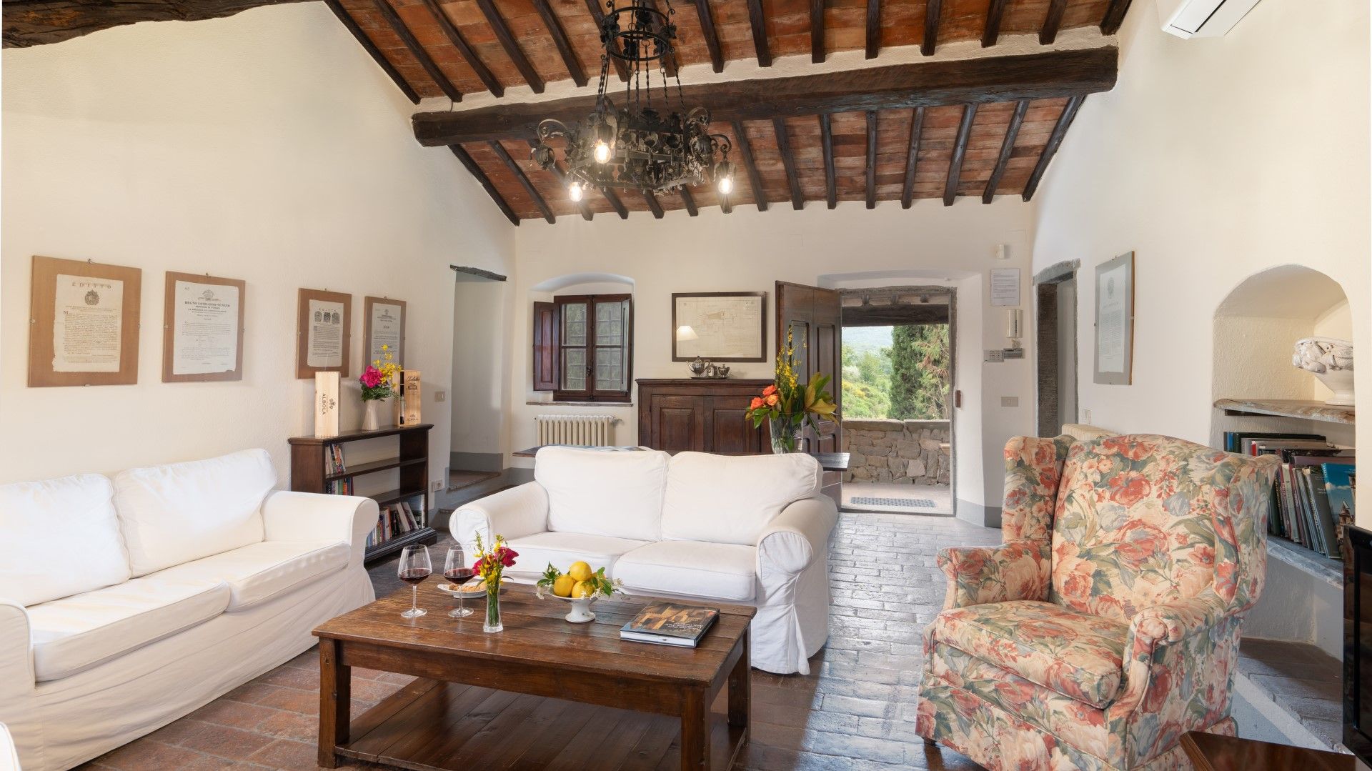 The property stands on the top of a gentle 500 m-high hillslope, surrounded by the dream landscape of the unique hills of Chianti, with dense woods, olive trees and immense rows of vines that stretch to the horizon. It is a 16th century rural Tuscan house in stone which has been renovated following tradition with spacious air-conditioned bedrooms with private bath and with a cosy living area with comfortable armchairs gathered around a large fireplace and surrounded by a green garden where guests can relax in all tranquillity under the panoramic pergola and by the fully-equipped pool. The house stands independantly within the prestigious setting of a wine estate which spreads over 137 hectares.